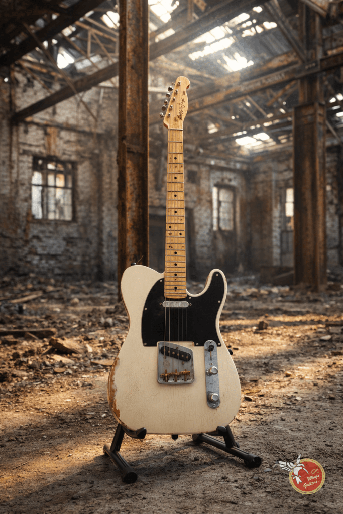 La Little Wings standard 51 est équipée d’un set télé Asyllum, une reproduction fidèle digne héritière des années 50 qui délivre une grande clarté, de définitions, des sonorités chaudes et précises avec un grain bien mordant (surtout en chevalet) mais permet également des sons clairs et articulés en position manche.